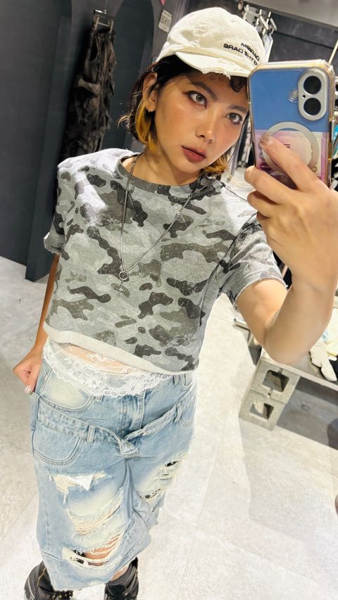 薄款麂皮迷彩oversize襯衫