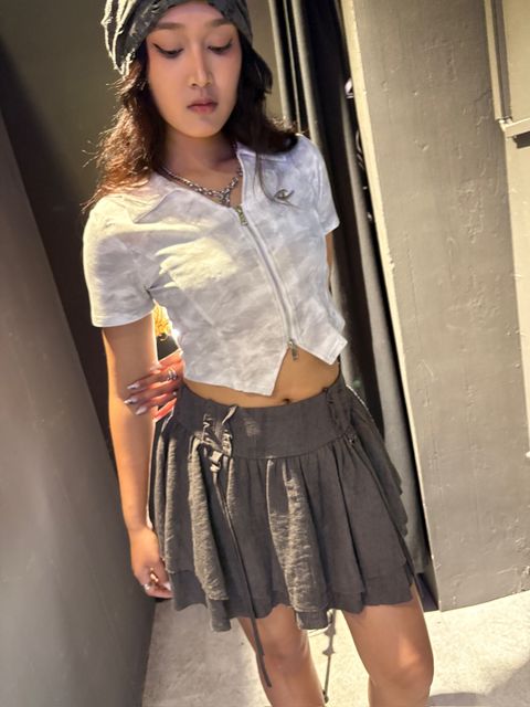 前後兩穿卯釘拉鍊蛋糕短裙